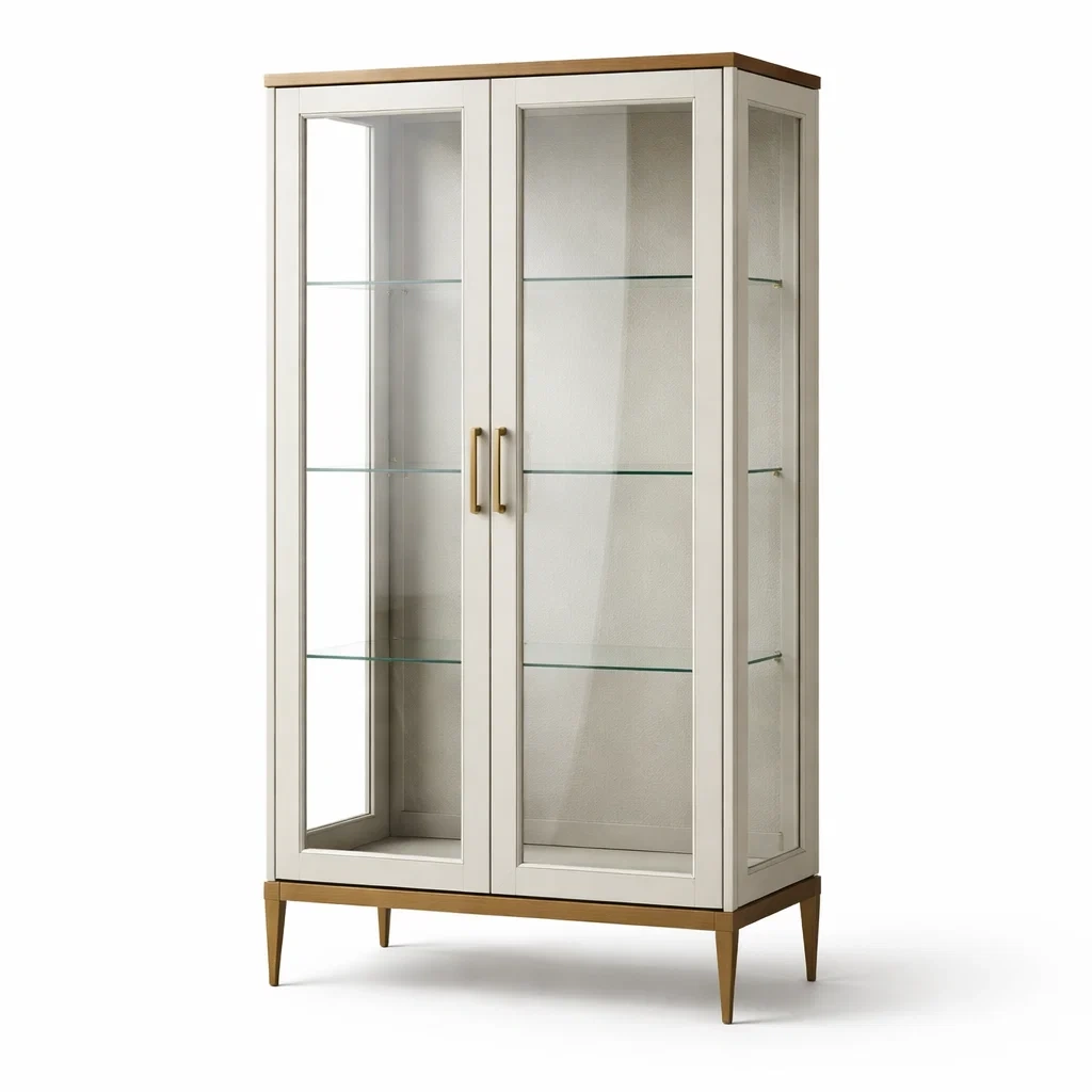 Vetrina in legno e vetro temperato bianca e bronzo 190x85x40 cm
